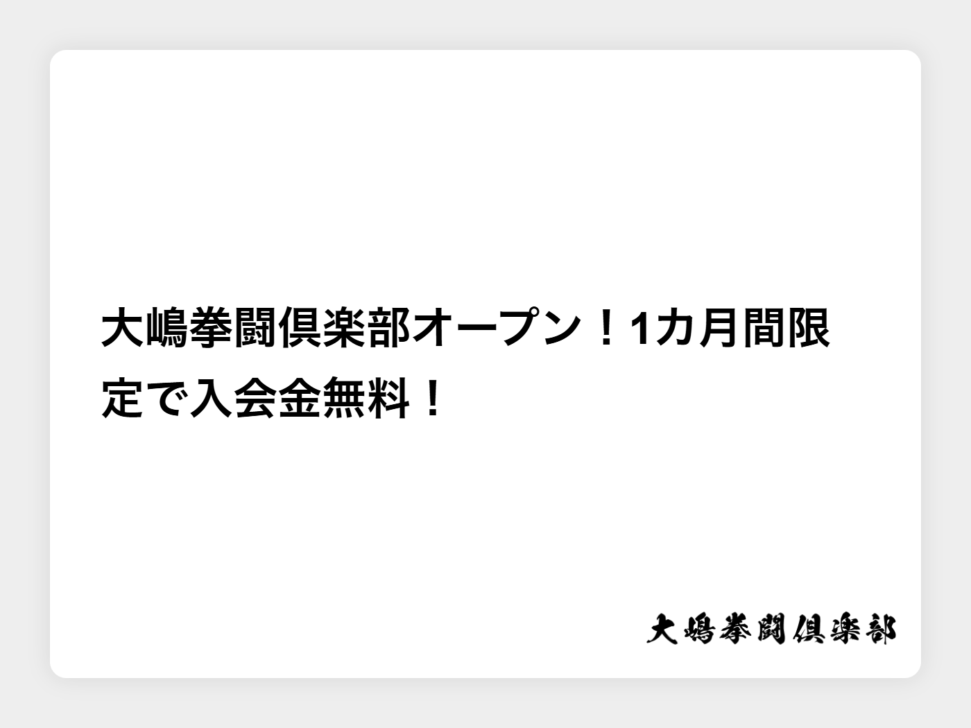 大嶋拳闘倶楽部オープン!1カ月間限定で入会金無料!