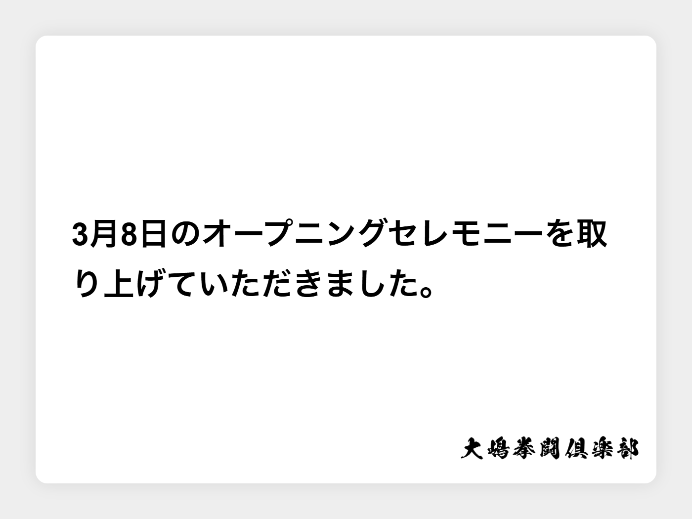 3月8日のオープニングセレモニーを取り上げていただきました。