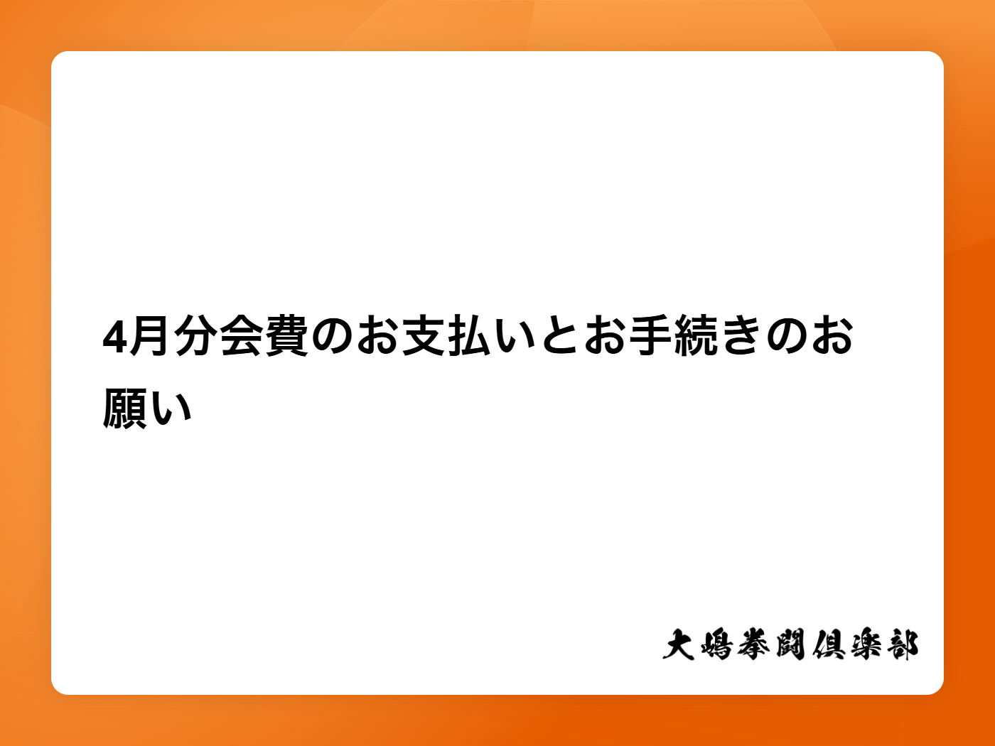 4月分会費のお支払いとお手続きのお願い