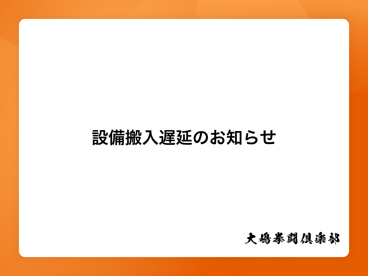 設備搬入遅延のお知らせ