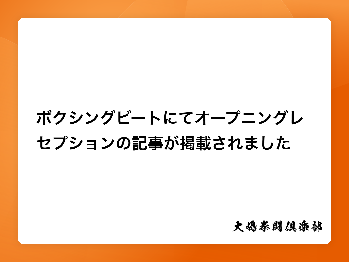 ボクシングビートにてオープニングレセプションの記事が掲載されました